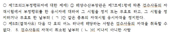 문제 43. 항만운송사업법상 검수사등에 관한 조문의 일부이다. ( )에 들어갈 것을 바르게 나열한 것은?