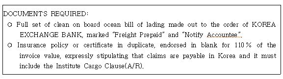 문제 26. 다음은 신용장상에서 요구하는 운송과 보험서류의 조건이다. 내용과 관련한 설명으로 옳지 않은 것은?