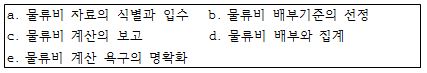 문제 6. 물류비의 비목적 계산과정으로 옳은 것은?