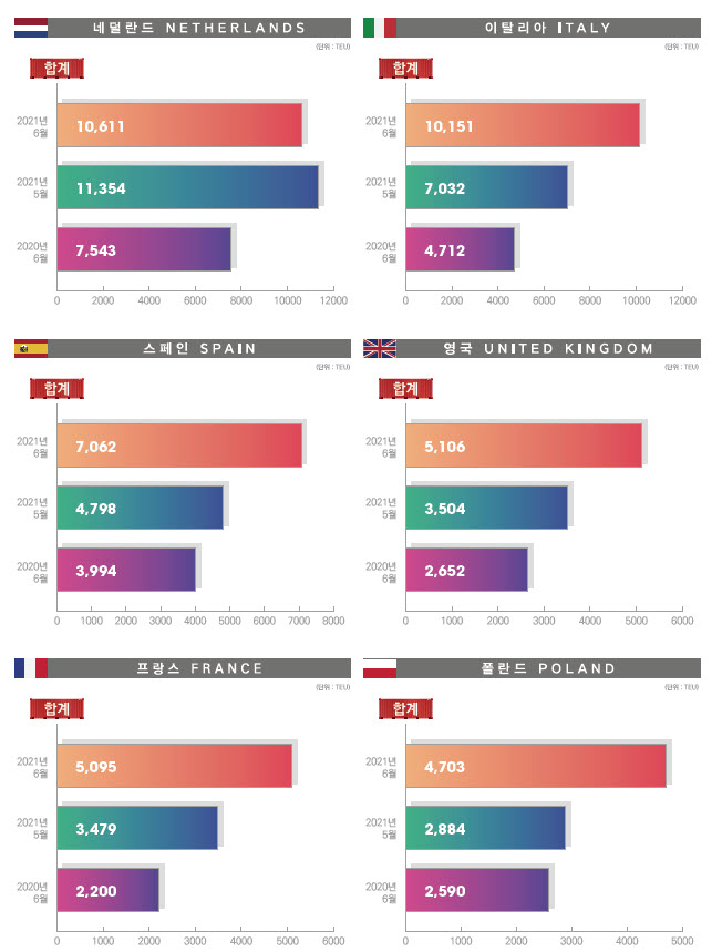 정기항로브리핑/ 구주항로 컨테이너 수출수송실적(2021년 6월)