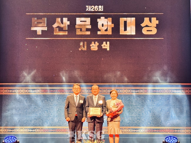 사진 가운데)이 16일 부산문화방송과 BMK부산은행 공동주최로 열린 제 26회 부산문화대상 시상식에서 해양수산 부문 대상을 수상했다고 밝혔다.