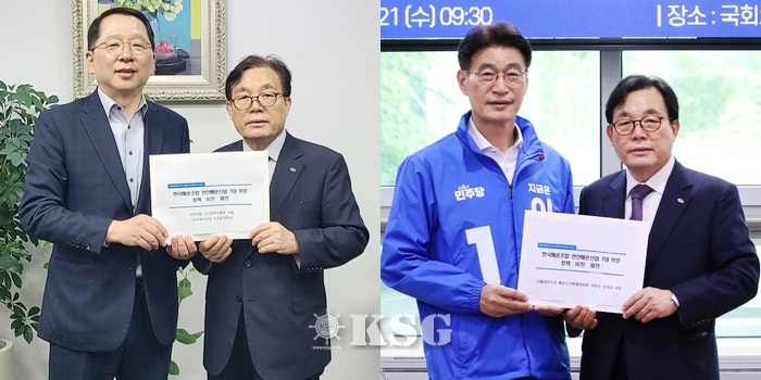 왼쪽 사진 왼쪽), 21일 더불어민주당 중앙선거대책위원회 문대림 해양수산위원회 위원장을 만나, 연안해운업계가 직면한 현실과 어려움을 설명하고 대선 이후 해운산업 발전을 위한 7가지 정책 비전이 반드시 실현될 수 있도록 간곡히 호소했다.