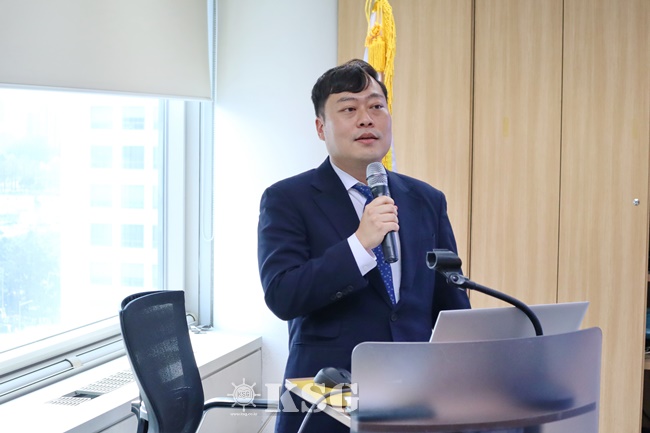 | ▲청년 해운조선물류인 모임 대표인 성우린 대륙아주 변호사가 인사말을 하고 있다. |