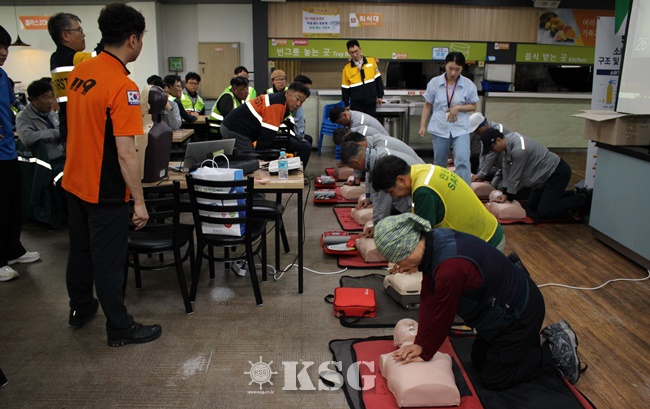 이날 훈련은 ▲화재 예방 ▲비상시 대처방법 ▲소화기 사용방법 등 소방교육과 심폐소생술 실습 등으로 이뤄졌다.