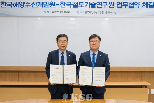 한국해양수산개발원(KMI)은 한국철도기술연구원(KRRI)과 지난 1일 연구개발 협력 활성화를 위한 업무협약(MOU)을 체결했다.