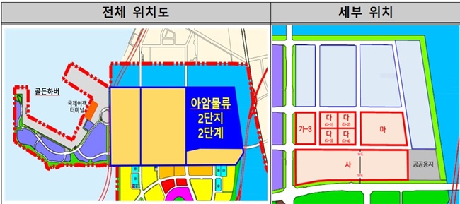 이번 공고는 아암물류2단지 2단계 부지 59만㎡ 중 25만㎡에 해당하는 A구역 7개 부지를 대상으로, 초소형 부지 4개(4만3000㎡), 소형 부지 1개(2만4000㎡), 중형 부지 1개(5만4000㎡), 대형 부지 1개(12만6000㎡)를 공급한다.