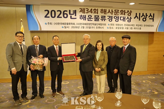 사진 오른쪽에서 두 번째)에게 돌아갔다. 해운물류학회와 해운항만학술단체협의회는 지난 2007년부터 해운물류산업 발전에 기여한 기업 경영인을 매년 한 명씩 발굴해 해운물류경영대상을 시상함으로써 기업의 경영 의욕을 고취하고 산업 발전을 도모하고 있다.