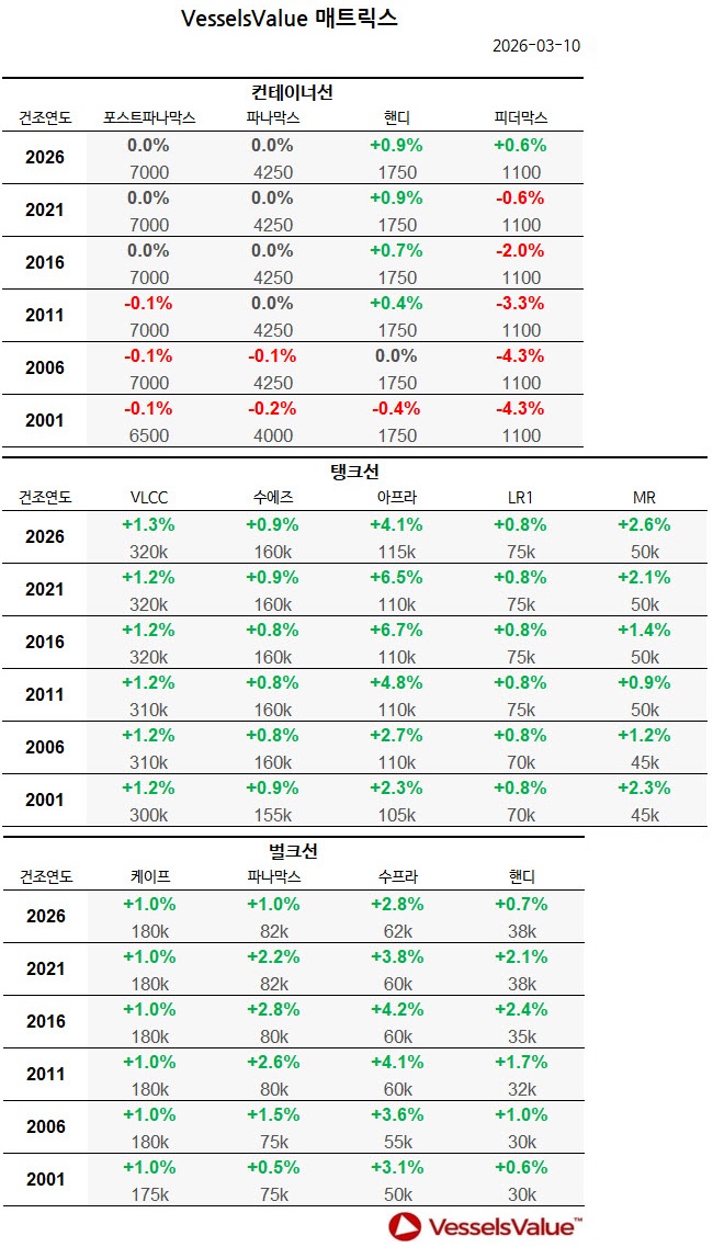 [표] 주간 중고선 가격동향