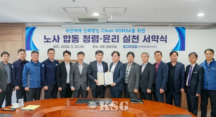 한국해양교통안전공단(KOMSA)은 25일 세종 본사에서 노사 공동 청렴‧윤리 실천 서약식을 개최하고 전사적인 청렴 실천 의지를 공표했다.