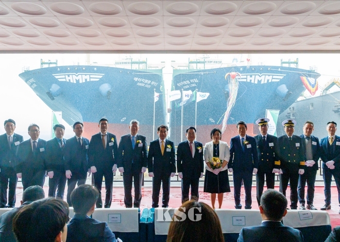 이날 행사엔 안병길 해진공 사장을 비롯해 최원혁 HMM 대표이사, 김재을 HD현대삼호 대표이사 등 금융·해운·조선 분야 주요 관계자 50여 명이 참석해 친환경 컨테이너 선박의 탄생을 축하하고 무사 항해를 기원했다.