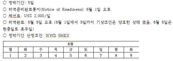 문제 26. 항해용선계약(Gencon C/P)상 정박기간과 체선료에 관한 조건이 아래와 같을 때 용선자 가 선주에게 지불해야 하는 체선료는?