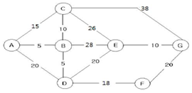 문제 14. 다음 네트워크에서 A에서 G까지 최단거리의 경로를 선택하여 도착할 경우, 총 소요거리는 얼마나 되는가? (단, 경로(Route)별 숫자는 km임)