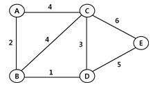문제 16. 다음 그림은 5개 지점을 연결하는 도로망이다. 평균 운송거리를 최소화하는 위치에 배송센터를 설치하고자 할 때 최적 위치는? (단, 어느 지점에 배송센터를 설치할 경우 배송센터로부터 그 지점까지의 운송거리는 0으로 가정하고, 각 구간별 숫자는 거리(km)를 나타냄)