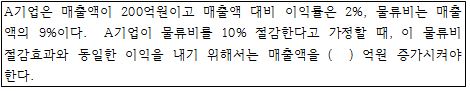 문제 2. 물류비 절감효과에 관한 것이다. ( )안에 들어갈 값은?