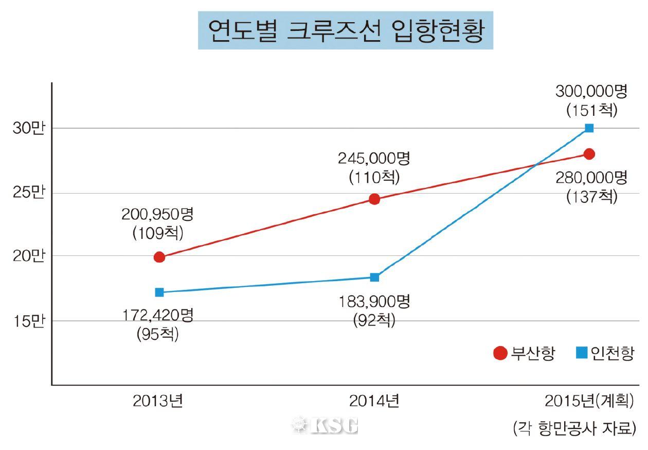 부산항과 인천항은 우리나라를 대표하는 항만으로서 그 역할은 이루 말할 수 없이 중요하다. 갈수록 치열해져가는 국내외 항만 경쟁으로 인한 위기극복과 새로운 항만사업의 모색으로 지역내 새로운 부가가치의 창출이라는 두 마리 토끼를 잡기위해 여러 노력을 펼치고 있는 가운데 이들이 펼치는 크루즈 산업은 지역 내에서 점차 큰 호응을 얻고 있다.