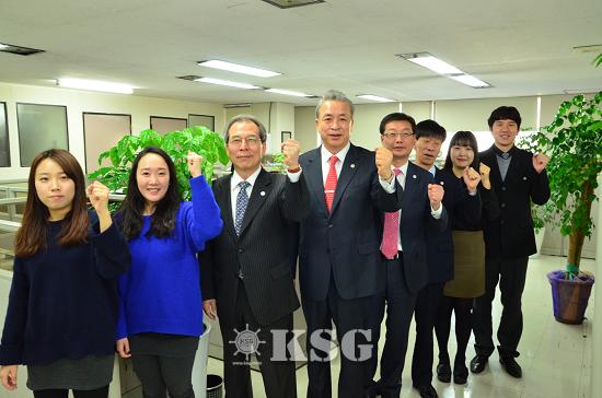 ▲한국국제물류협회 김병진 회장과 직원들