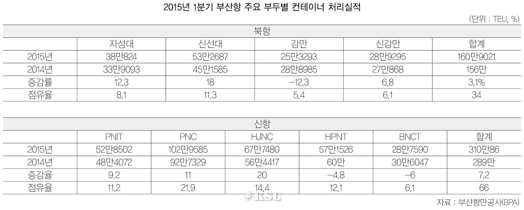 가장 높은 상승세를 보였던 터미널은 신선대부두(CJ대한통운부산컨테이너터미널)였다. 신선대부두는 53만2687TEU를 처리, 증가율과 점유율 부문에서 다른 터미널을 압도했다. 자성대부두(허치슨터미널) 역시 두 자릿수 성장하며 부산 북항 전체 물동량 상승을 이끌었다. 자성대부두는 수출입과 환적 실적에서 모두 두 자릿수 성장을 보였다. 이밖에 신감만부두 역시 6.8% 증가한 28만9295TEU를 기록하며 북항 물동량 상승에 힘을 보탰다.