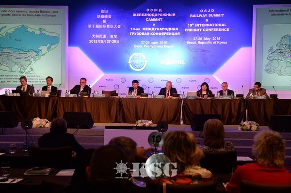 첫번째 세션으로는 ‘한반도에서 시작하는 국제철도화물운송 전망’을 주제로 실크로드 익스프레스를 위한 한국과 OSJD의 협력, 시베리아횡단철도(TSR)개발, 아시아-태평양 지역 국가들의 화물운송 잠재력, 화물운송시장의 현재 상황 등의 발표가 이어졌다.