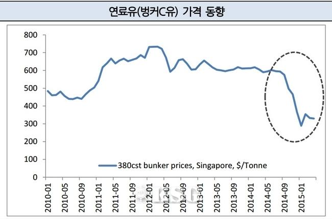 유가하락을 배경으로 한 해운업체들의 실적 개선이 해운산업의 불투명성을 변화시키기는 어려울 것으로 분석됐다. 한국기업평가는 유가하락에 따른 원가 절감에 힘입어 단기 영업실적은 개선되고 있지만 선복량 공급과잉으로 운임 하락 압력은 오히려 커지는 실정이라며 이 같이 전망했다.