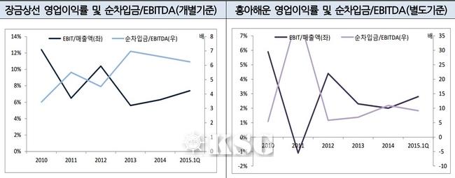 흥아해운은 근해항로 운임 하락과 용선 추가 도입에 따른 용선료 증가 등으로 영업이익률이 하락세를 띠었으나 유가하락을 배경으로 다시 이익 개선에 나서고 있다.