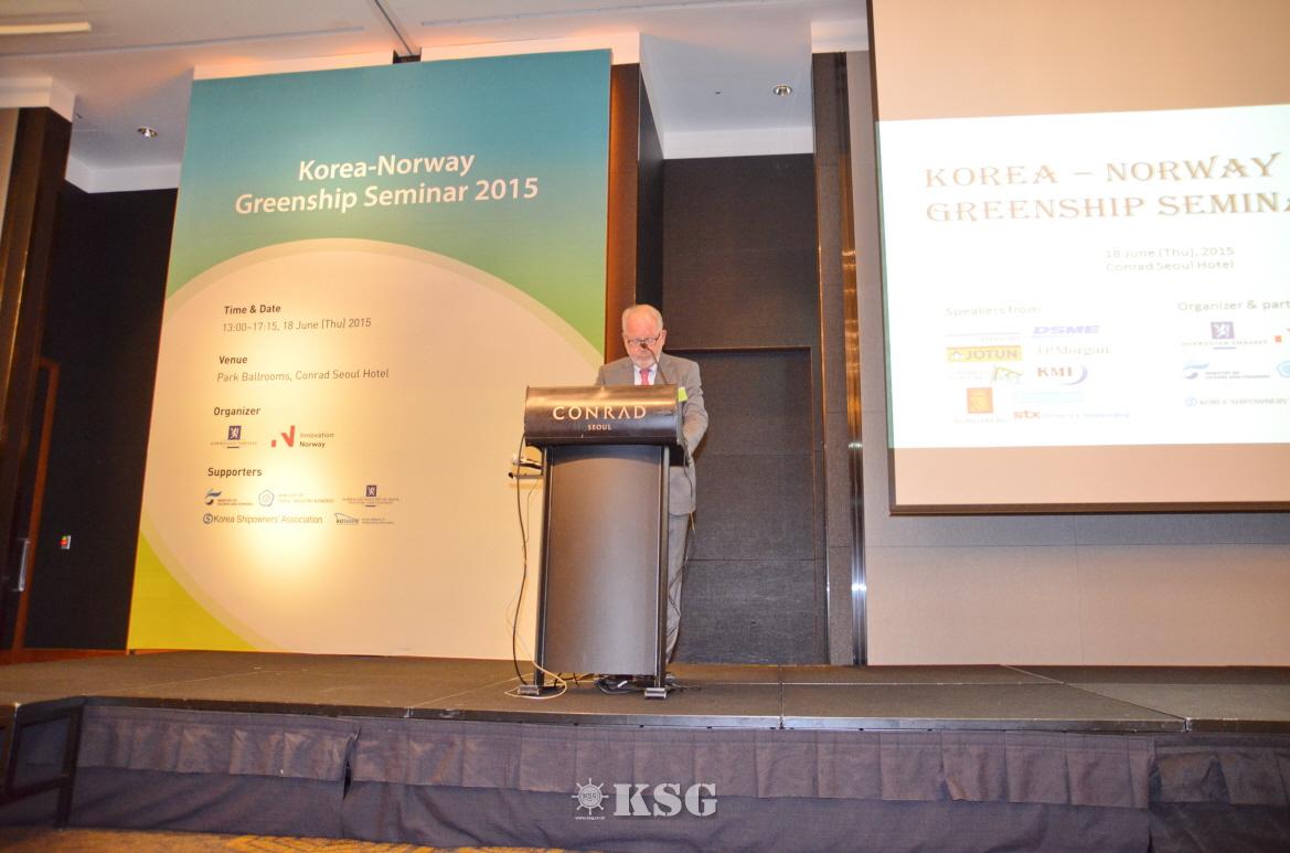 톨비요른 홀테 주한노르웨이대사는 이날 환영사를 통해 "향후 해운조선업에서 그린십 분야가 핵심성장의 한 축이 될 것으로 보인다"며 "그린십에 적용되는 기후시스템, 엔진, 연비 등의 기술개발과 관련해 양국이 더욱 연구하고 힘써야할 것"이라고 말했다.
