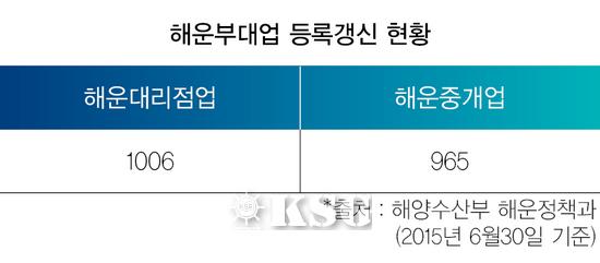 해양수산부 해운정책과에 따르면 2015년 6월30일 기준으로 해운대리점업체는 1006곳, 해운부대업체는 965곳이 등록갱신을 완료한 상태다. 해수부 해운정책과 측은 “하루에 1~2곳씩 새로운 업체 등록 요청이 꾸준히 들어오고 있다. 특히 해운중개업의 경우 업체 신설이 해운대리점업보다 훨씬 더 많다”고 밝혔다. 해외 선주와 계약을 맺어야 하는 해운대리점업에 비해 비교적 업체 개설이 쉬운 중개업체가 신규 등록과 폐업 신고 횟수가 잦다는 설명이다.