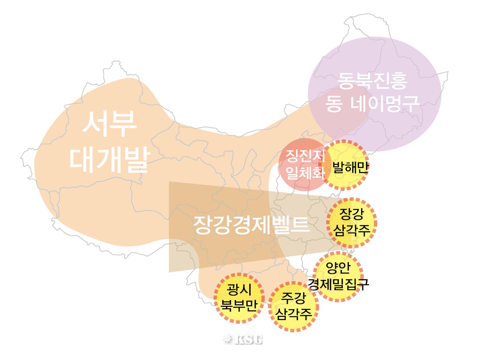 중국은 내륙으로는 14개 주변 국가와 연결돼 있고 해상의 주변국까지 합치면 30개 국가와 연결돼 있다. 중국은 일대일로를 통해 이런 주변국과 연결돼 있는 지방정부를 해외로 나가는 전략의 창구로 활용하고 그 지방 정부와 연결돼 있는 내륙 지방을 배후지로 연계해 발전시킬 산업 네트워크 공간으로 활용하려는 목적을 갖고 있다. 중국은 3대 삼각주(보하이만, 장강, 주강)를 포함한 중국 연안 지역, 징진지(베이징, 텐진, 허베이), 장강 경제일체화, 서부대개발 동북진흥이 진행되고 있으며, 일대일로는 이런 중국의 기존의 각종 지역 개발 프로젝트들을 함께 엮은 전략이다.