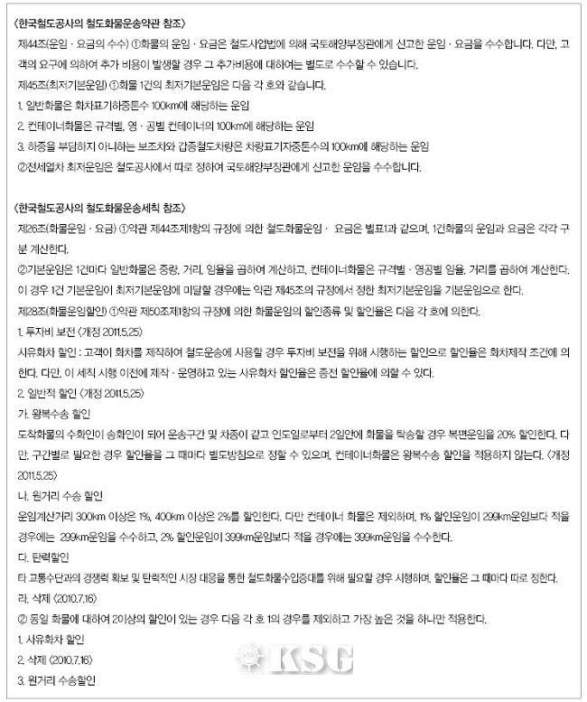 운송업체로서 코레일의 입장에서 책임운송구간인 철도역과 철도역간 간선수송의 소요시간이나 서비스품질을 주장할 수 있겠으나, 화주의 입장에서 볼 때 Door to Door(화주문전에서 문전까지)의 시간경쟁력, 운임경쟁력 및 서비스경쟁력을 고려할 수밖에 없다는 점이다.