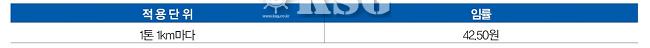 [참고] 최저기본운임(화물운송세칙 별표 1 화물운임요금표)
