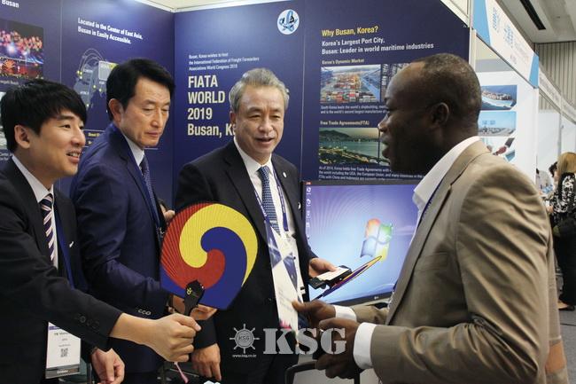 김 회장은 올해 협회장으로 선임된 후 FIATA 총회 부산 개최를 주요 추진과제로 꼽았다. 이후 공약에만 그치지 않기 위해 지방자치단체와 국토교통부에 협조를 요청했다. 타이베이 총회 참석 전에는 국토교통부 유일호 장관과 서병수 부산시장을 직접 만나 FIATA 총회 부산 개최에 대한 의견을 교류하고 부산을 알리는 홍보물을 제작해 차근차근 유치 준비를 진행했다. 부산관광공사와 국제물류협회는 FIATA 총회 기간 내내 행사장 1층에 한국국제물류협회 홍보관을 운영하며 전시회에 참석한 FIATA 회원들에게 총회 부산 개최를 적극 홍보했다.