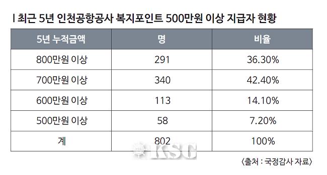 여기다 각종 탈세의혹도 제기된다. 변재일 의원이 ‘인천공항공사 최근 5년 복지포인트 지급액’을 분석한 결과, 5년 동안 복지포인트 지급액이 500만원 이상인 자가 802명으로 전체 공항직원의 80%에 달했고, 700만원 이상인 경우도 631명에 육박했다. 국세청은 복지포인트가 10년 동안 1000만원이 이상 지급된 경우 이를 증여로 보고 ‘증여세’를 납부해야 한다고 결정했다. 변 의원은 “국세청이 전 공공기관을 대상으로 조사를 시작한 만큼 복지포인트 지급액이 1년 평균 200만원 수준인 인천공항의 세금탈루 여부에 대한 조사가 필요하다”고 지적했다. 인천공항은 이미 2008년 이후 2차례 걸친 국세청의 정기세무조사에서 5년 동안 법인세, 부가세 등 총 2288억원의 세금을 추징당한 바 있다. 당시 세무당국의 과세내용을 보면 ▲상업시설 사용료 379억원 ▲감가상각 내용연수 203억원 ▲2~9공구 매립공사 158억원 ▲교통센터 철도시설 135억원 ▲BOT 임대수익 106억원 ▲기타 2단계 준공 세금계산서 작성시기 부적정, 협력업체 지원비용 접대비 등 239억원을 추징한 것으로 나타났다.