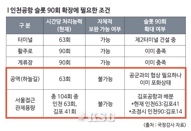 신기남 의원은 인천공항이 지금의 한계를 뛰어넘기 위해 슬롯확보가 필요하다는 의견에 공감하면서도 터미널과 활주로, 계류장 등은 이미 조건을 만족했거나 자체적인 보완이 가능하지만 공역과 서울접근 관제용량은 외부적 요인이 충족되기 어려울 것으로 관측했다. 인천공항은 슬롯 확장을 위해 이미 5조원 가까운 예산을 들여 제2터미널 건설 사업을 추진하고 있는 실정이다.
