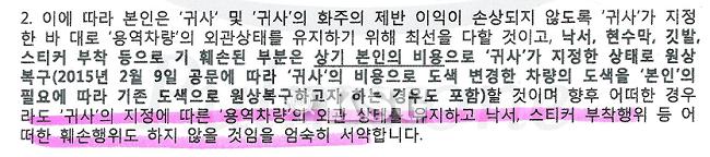 ▲도색 유지 서약서 내용 일부