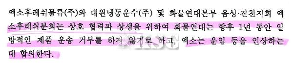 ▲엑소후레쉬물류와 화물연대의 합의서 내용 일부