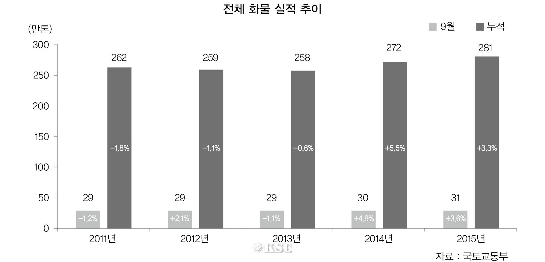 9월 항공화물은 국제선 화물을 중심으로 증가하면서 전년 동월 대비 3.6% 증가한 31만t을 나타냈다.