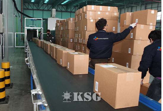 ▲특송장 수출입 업무를 하고 있는 CJ대한통운 직원들