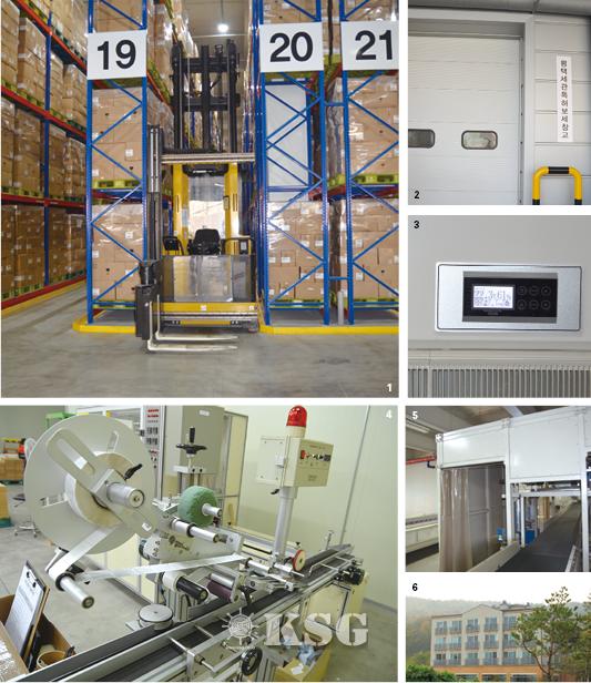 ▲1.삼방향 지게차 2.보세창고구역 3.온도 및 습도관리 시스템 4.라벨 부착기