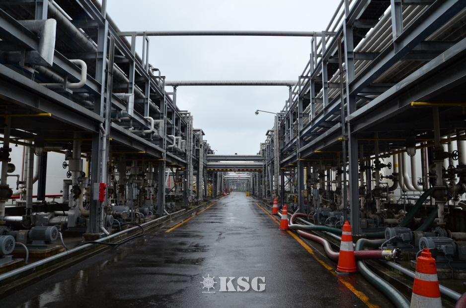 현장에 들어서자 두 귀를 먼저 의심했다. 고요한 정적이 흘렀다. 안벽크레인, 리치스태커 등 수많은 기계음이 섞여 들리는 컨테이너 터미널과는 정반대였다. 아침부터 내리고 있는 비 때문에 그런지 정적은 더욱 짙게 깔렸다. 기자를 먼저 맞은 건 다양한 사이즈의 저장 탱크와 파이프였다. 색은 모두 같았지만 파이프가 향하는 종점은 모두 달랐다. 알고 보니 탱크로리 트럭, 인근 정유공장, 선박 등 파이프의 목적지는 다양했다.