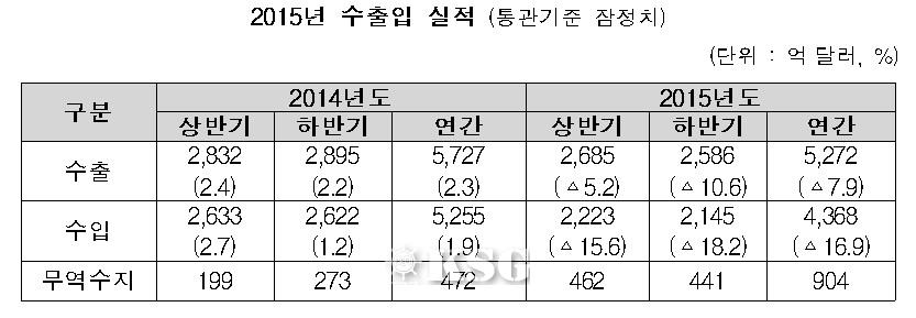수출은 세계경기 둔화, 유가하락, 세계교역 축소 등 경기적인 요인과 함께 중국 수입구조 변화, 해외생산 확대 등 구조적 요인 영향으로 부진했다.