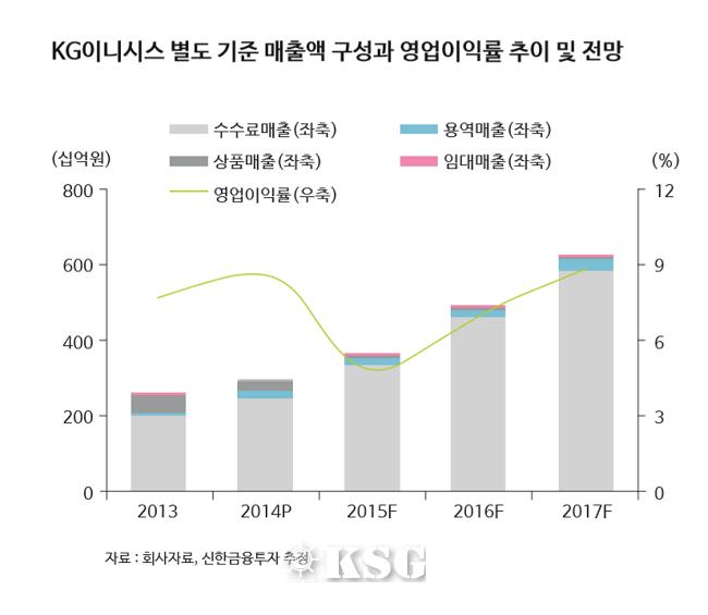 KG로지스의 성장성을 분석하기 위해선 KG이니시스의 주요 사업인 신용카드 PG(Payment Gateway) 사업을 함께 들여다봐야 한다. KG이니시스는 신용카드 PG 1위 업체다. PG란 가맹점과 카드사를 연결하여 전자 결제를 대행하는 것을 뜻한다. 카드 수수료율 인하 방안에 따르면 연매출 2억원 이하의 소규모 가맹점에 대한 신용카드 수수료가 2016년 1월 말부터 현행 1.5%에서 0.8%로 인하됐고, 연매출 2억~3억원이면 2.0%에서 1.3%로 대폭 인하됐다. 삼성증권 오동환 연구원은 KG이니시스가 지불하는 신용카드 수수료 역시 인하될 가능성이 높다고 분석하며, 시차로 인해 단기 수익성이 개선되는 효과가 발생할 것으로 관측했다.