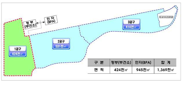 전체 3개 공구 중 1공구는 해양수산부 부산항건설사무소에서 총사업비 1742억원을, 나머지 2개 공구는 부산항만공사(BPA)에서 총사업비 2564억원을 투입해 총 144만㎡(축구장 196개 크기)의 항만배후단지 공급을 2021년 7월까지 완료할 계획이다.