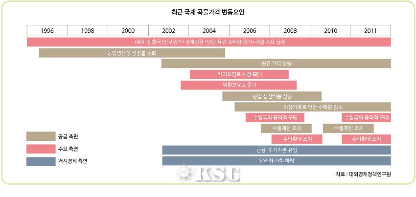 지난 2007~2008년 곡물가격이 급등하면서 세계 30여 개국에서 식량폭동이 발생했고 아이티, 이집트 등 여러 나라에서 정권이 무너졌다. 여기다 지구온난화와 기상이변으로 식량생산이 크게 위축되고 있으며, 신흥공업국들이 경제성장으로 생활이 윤택해지면서 동물성식품 소비가 크게 증가해 사료곡물의 수요가 폭발적으로 증가했다. 특히 올해는 슈퍼엘리뇨에 따른 기상이변과 라니냐 등에 따라 농산물 수급불안이 반복될 가능성이 높다. 사료업계 관계자는 “올해 라니냐 현상이 올 가능성이 매우 높은 것으로 관측되고 있다”며 “라니냐가 오면 엘리뇨보다 더 심각한 영향을 끼칠 것으로 전망된다”고 설명했다.