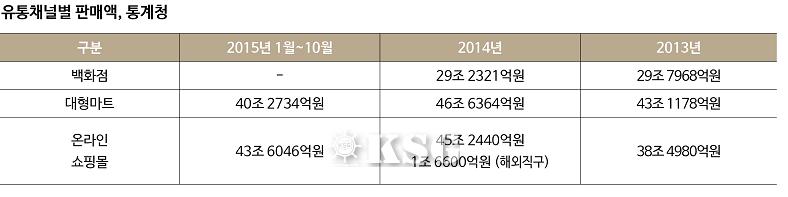 지난해에는 온라인 쇼핑이 대형마트 판매액을 추월했다. 통계청에 따르면 2015년 1월부터 10월까지 대형마트 판매액은 40조2734억원이다. 온라인 쇼핑몰 43조6046억보다 3조3312억원 적은 금액이다.