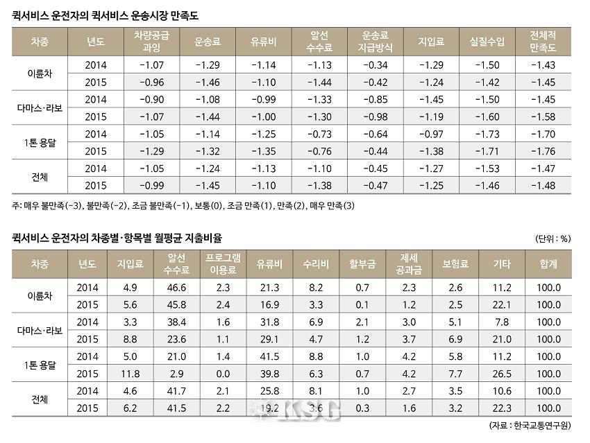 퀵서비스 시장과 관련된 통계자료도 부족한 실정이다. 그나마 한국교통연구원이 집계한 자료의 신뢰도가 가장 높다. ‘2015 퀵서비스 운전자 조사보고서’에 따르면 산재보험에 가입한 이륜차 기사는 4.1%에 불과한 것으로 나타났다. 사업자 등록 비율도 4.6%로 저조했다. 평균 배송경력은 11.9년이며, 월 순수입은 2014년 189만원에서 2015년 214만원으로 소폭 증가한 것으로 확인됐다.