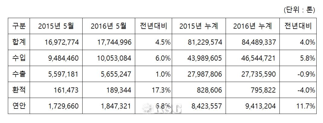 | ▲ 울산항의 2015·2016년 물동량 비교 현황 |