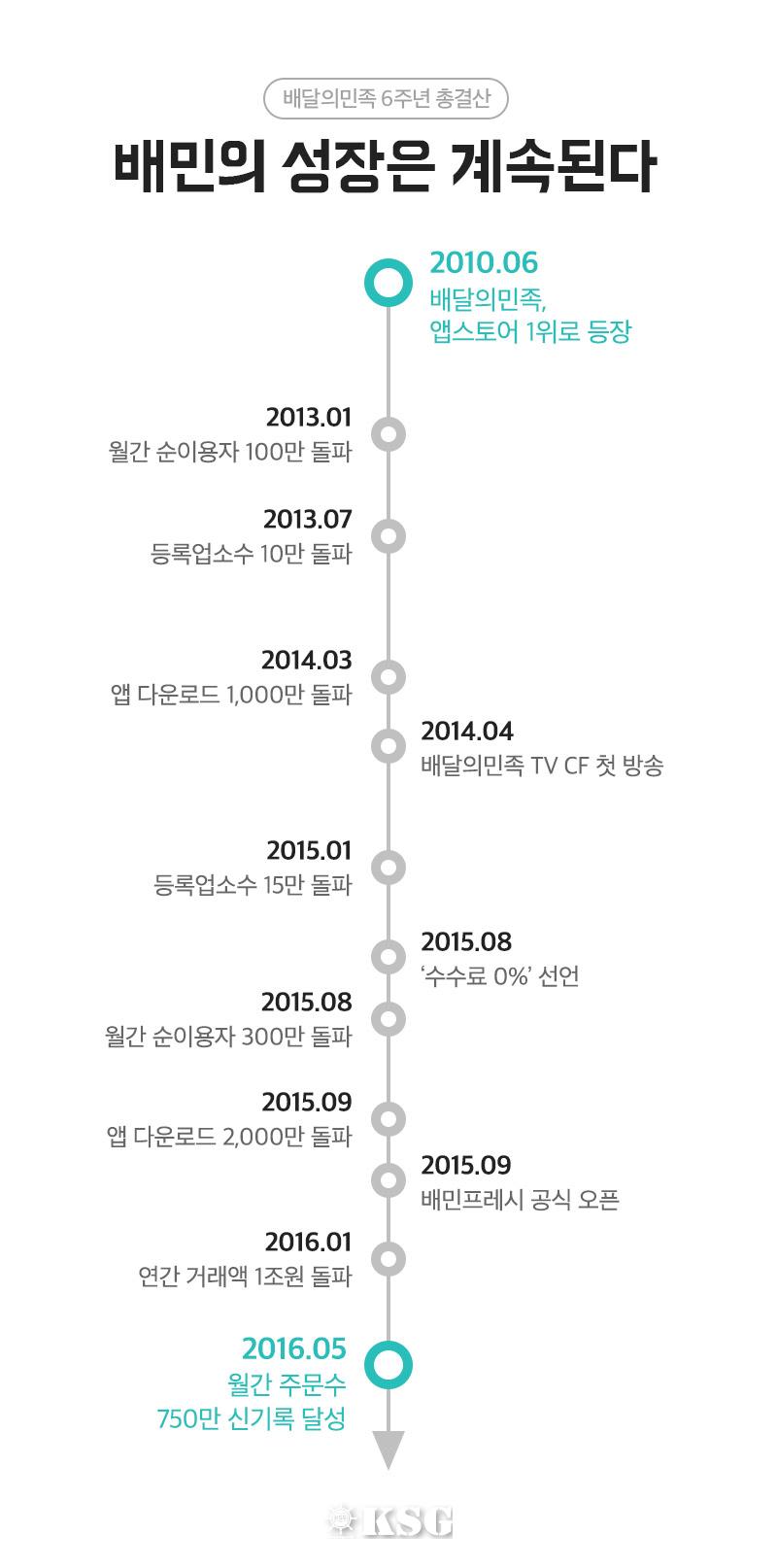 배달앱 ‘배달의민족’을 운영하는 우아한형제들이 출범 6주년을 맞아 그간의 발전 및 변화상을 정리한 인포그래픽을 공개했다.