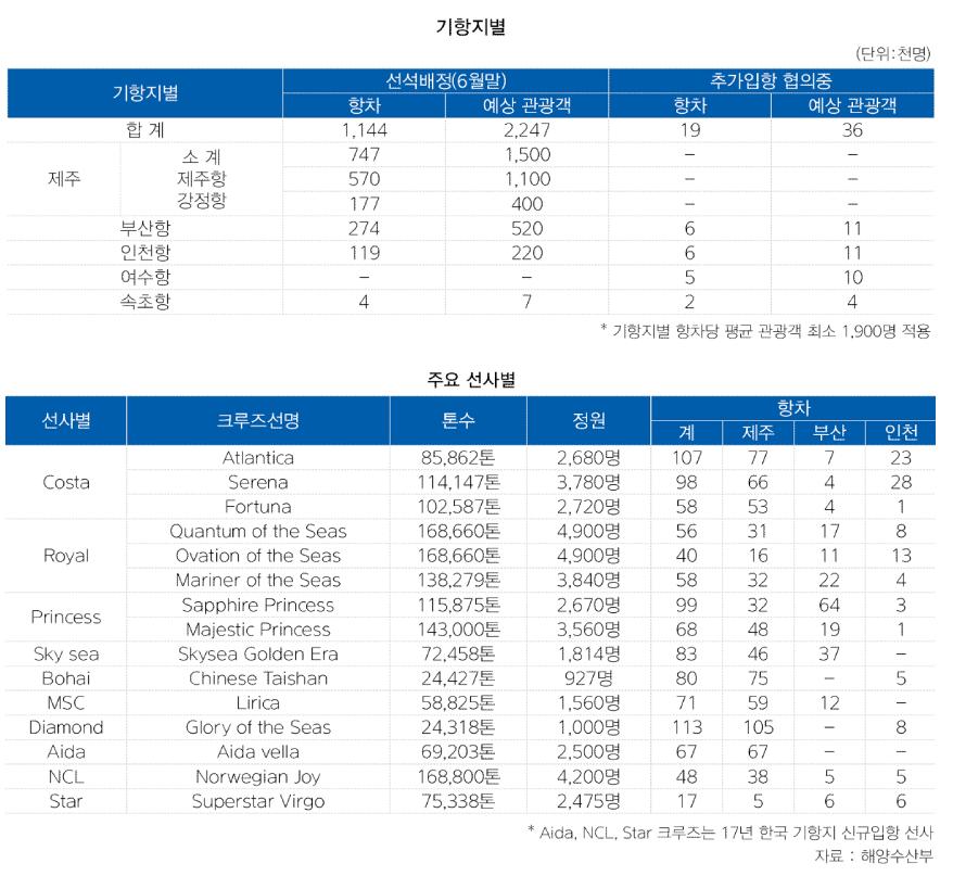 상반기 크루즈 관광객 입항동향 발표