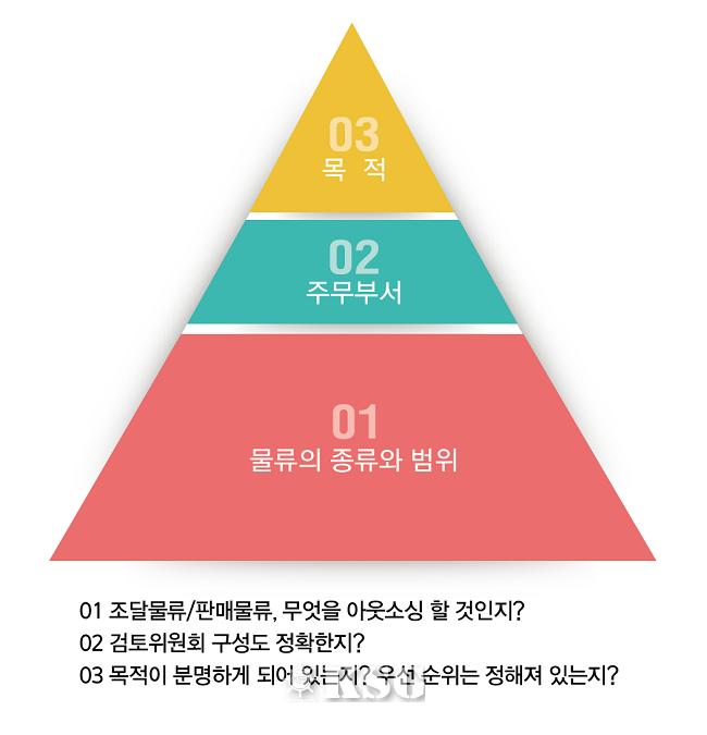한 과제가 추출되어 있지 않으면 효율적인 운영에 지장을 초래하거나, 회사 관계자가 설명을 할 수 없는 상황이 되어버려 물류 아웃소싱이 좌절된다.