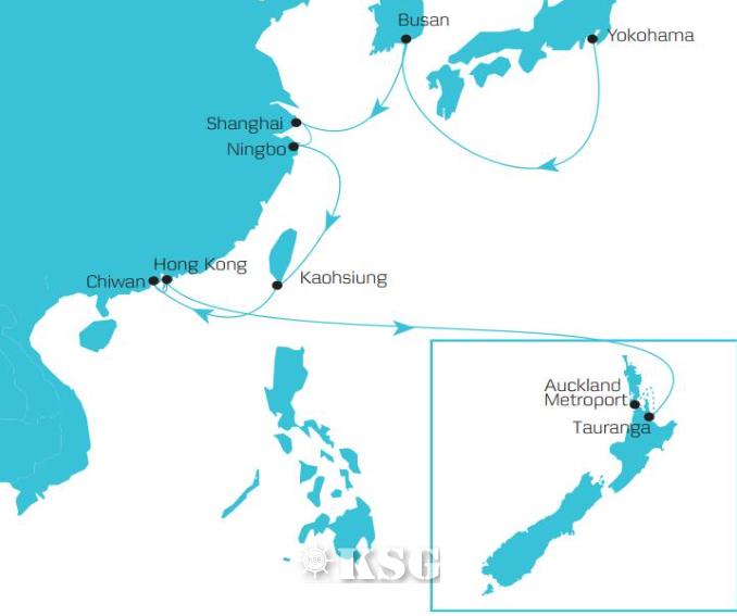 이번에 개설된 동북아-뉴질랜드 노선은 요코하마-부산-상하이-닝보-가오슝-츠완-홍콩-타우랑가-오클랜드를 연결하며, 동북아 7개항과 뉴질랜드 2개항을 기항하는 서비스다. 새로운 서비스는 7월부터 주 1회씩 제공되며, 홍콩에서 타우랑가항까지 총 14일이 소요된다.