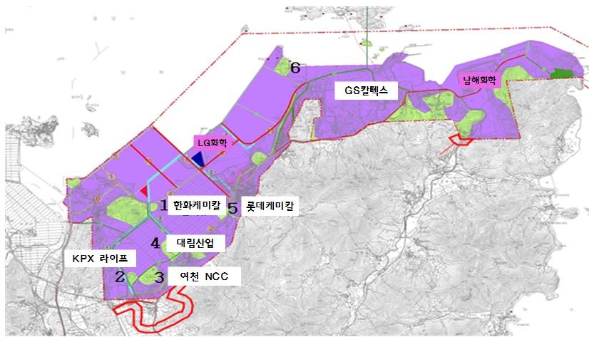 ‘여수 국가산단 공장용지 증설 산단 개발 사업’은 녹지를 공장용지로 변경하는 것을 내용으로 사업시행자 GS칼텍스, 한화케미컬, KPX라이프사이언스, 여천NCC, 대림산업, 롯데케미컬 등 6개사가 여수시 월하동, 적량동 등 일원 총 66만1630㎡(20만143평·6개소)의 면적에 진행한다.